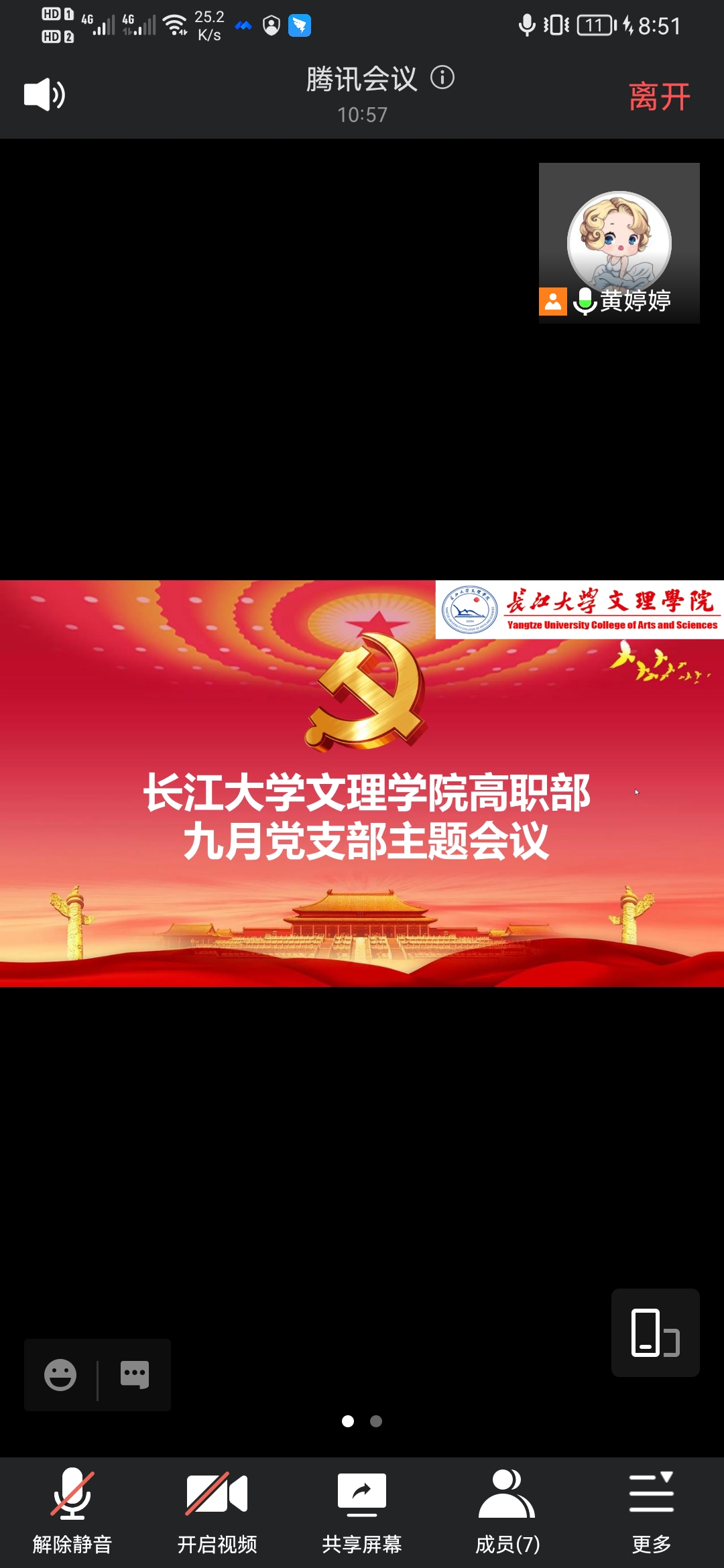 本网讯(通讯员周海静)9月27日,高职部员工党支部开展9月份支部主题党日活动,会议由高职部员工党支部黄婷婷同志主持。