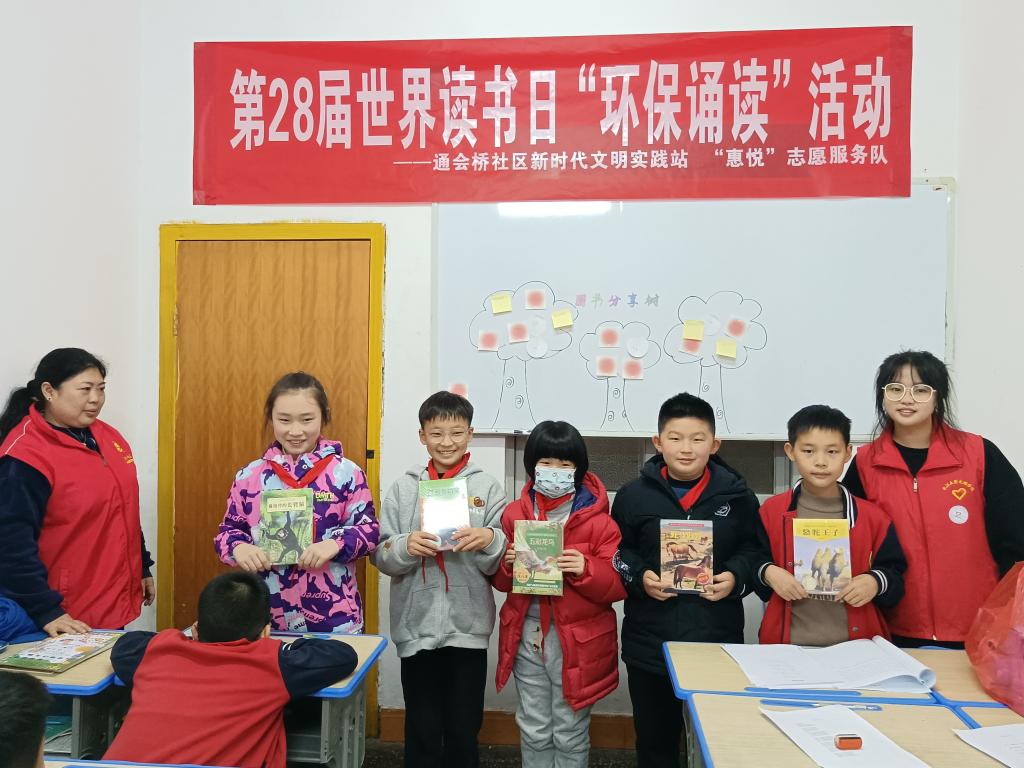4月23日,通会桥社区;联合太阳集团tyc9728高职部晨曦志愿者服务队,以“书香伴你我、环保在行动”为题开展“环保之星”的活动,深入推进通会桥社区全体居民朋友提高环保意识,共同建设书香社区。
