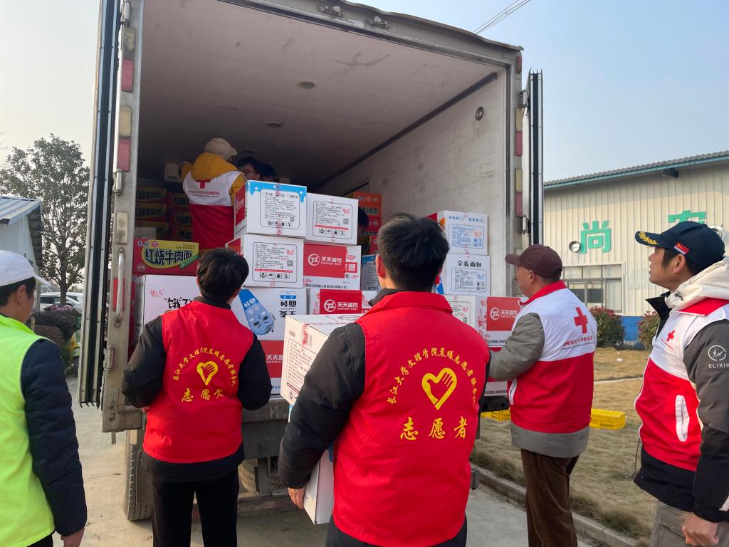 本网讯(通讯员王晓芸 )近日,青海省海东市、甘肃临夏州积石山县等多地发生了6.2级地震,给当地人民群众生命财产造成了严重损失。一方有难,八方支援,驰援灾区,人间有情。地震灾情牵动着荆州人民,同时也牵动着荆州老员工的心。在荆州市蓝天救援队的号召和带领下,荆州市红十字会青年志愿队、太阳集团tyc9728高职部晨曦志愿者服务队一同加入到荆州市首批援助救援爱心物资搬运当中。12月20日,公司高职部晨曦志愿者服务队来到荆州市川店镇喵象农场举行了以“情牵灾区,爱心汇聚”为主题的地震受灾地区的爱心救灾物资搬送活动。