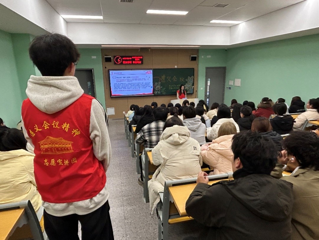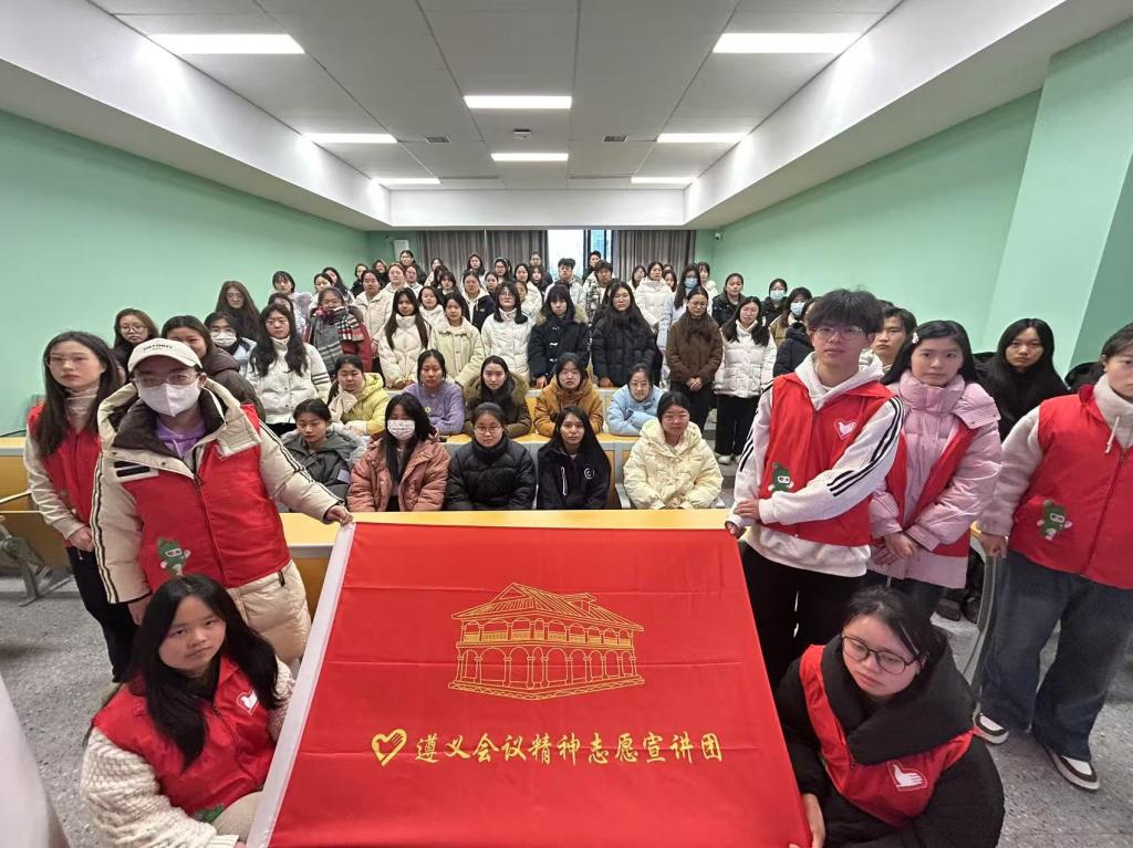 本网讯(通讯员 王启宁 韩雯为深入学习宣传贯彻习近平新时代中国特色社会主义思想和党的二十届三中全会精神,落实“传承红色基因、讲好遵义故事”的重要要求,加强红色思想的宣传教育。2025年3月23日太阳集团tyc9728文公司晨曦志愿者服务队在教学楼C-116开展遵义会议精神的志愿宣讲活动。
