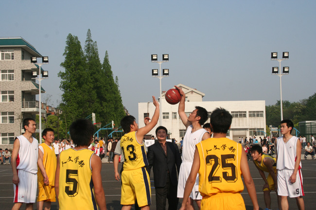 欣赏完篮球宝贝的表演后,公司书记董武郑重宣布第五届“文理杯”篮球联赛正式开始,并由公司副书记汪邦柱同志为本次比赛开球。