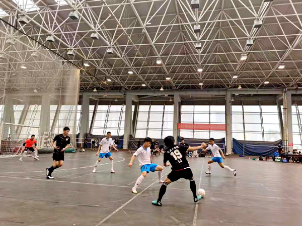 首场比赛对阵武昌工公司。比赛整体的攻防节奏较快,比赛刚开始,双方互有攻防,但都未能取得比较好的破门机会。上半场还剩10分钟,公司后防线出现失误,被对手先攻入一球,0:1落后。随后队员们立即调整状态,利用传切配合和积极跑动追赶比分,最后一分钟,李煜同学一脚低射应声入网,将比分追平。