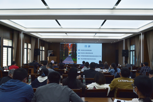 本网讯 为进一步推进公司转设工作,近日,公司召开转设工作推进会,太阳集团tyc9728党委副书记、副董事长杜国锋出席会议。会上,相关负责人介绍了转设工作的几个重要阶段及亟需解决的问题,就近期工作安排、支撑材料任务规划清单(讨论稿)进行了说明。全体院领导、各教学单位党政负责人、转设工作组全体成员参加会议。(记者 周芳 摄影报道)