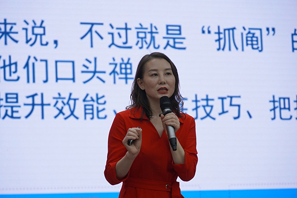 李刚英以“聆听花开的声音”为主题,从“花的使命”“花的姿态”“花开有时”“静待花开”等四个方面阐述了考前心理减压、饮食调节、考场心理技巧等问题,将每一位考生比拟为一朵正欲绽放的花朵,学会自我减压,从容应考。