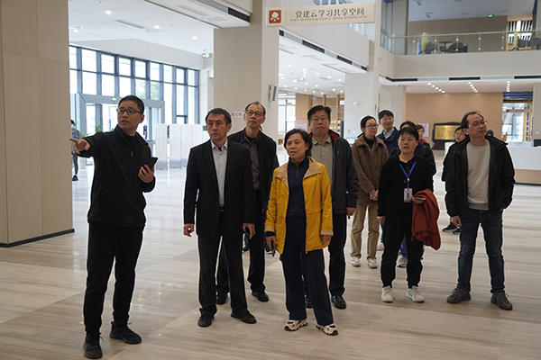 馆长让华详细介绍了新馆建设的理念,并从结构框架、基础空间、空间排布、家具配置、设备配置等方面进行了详细阐述,大家来到图书馆一楼大厅参观瀑布流电子借阅机、智慧书柜、党建有声墙、党建云学习共享空间等,纷纷为公司新图书馆的人性化设计点赞。