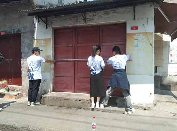 调研中,工作坊成员对三义街居民进行走访,询问当地居民对于古城改造的意愿与建议,并对街区历史古建筑进行测绘,收集相关数据尺寸。之后,工作坊成员去到三义街社区居委会,并与相关人员进行讨论。居委会工作人员表示希望积极开展公司员工与社区居民之间联动合作,并为工作坊成员提供历史文化街区修复与改造建议和相关资料。