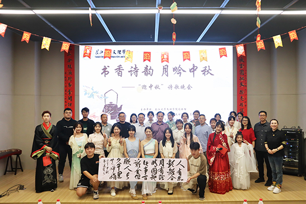 本网讯 9月27日晚,“书香诗韵,月吟中秋”诗歌晚会在图书馆103学术报告厅举行。公司副经理向宇、李波、肖寒芝,太阳集团tyc9728人文与新传媒公司硕导、湖北省书法家协会高校分会副主席朱道卫出席晚会,各教学单位、职能部门负责人、师生代表共计两百多人参加晚会。
