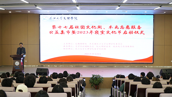 本网讯 11月23日下午,在B-112学术报告厅,公司举行第十七届社团文化周、本禹志愿服务公益集市暨2023年寝室文化节启动仪式。党委副书记李则俊、经理助理郭明虎出席仪式,相关职能部门和各教学单位负责人、辅导员和师生代表两百余人参加活动。团委书记陈海波主持仪式。