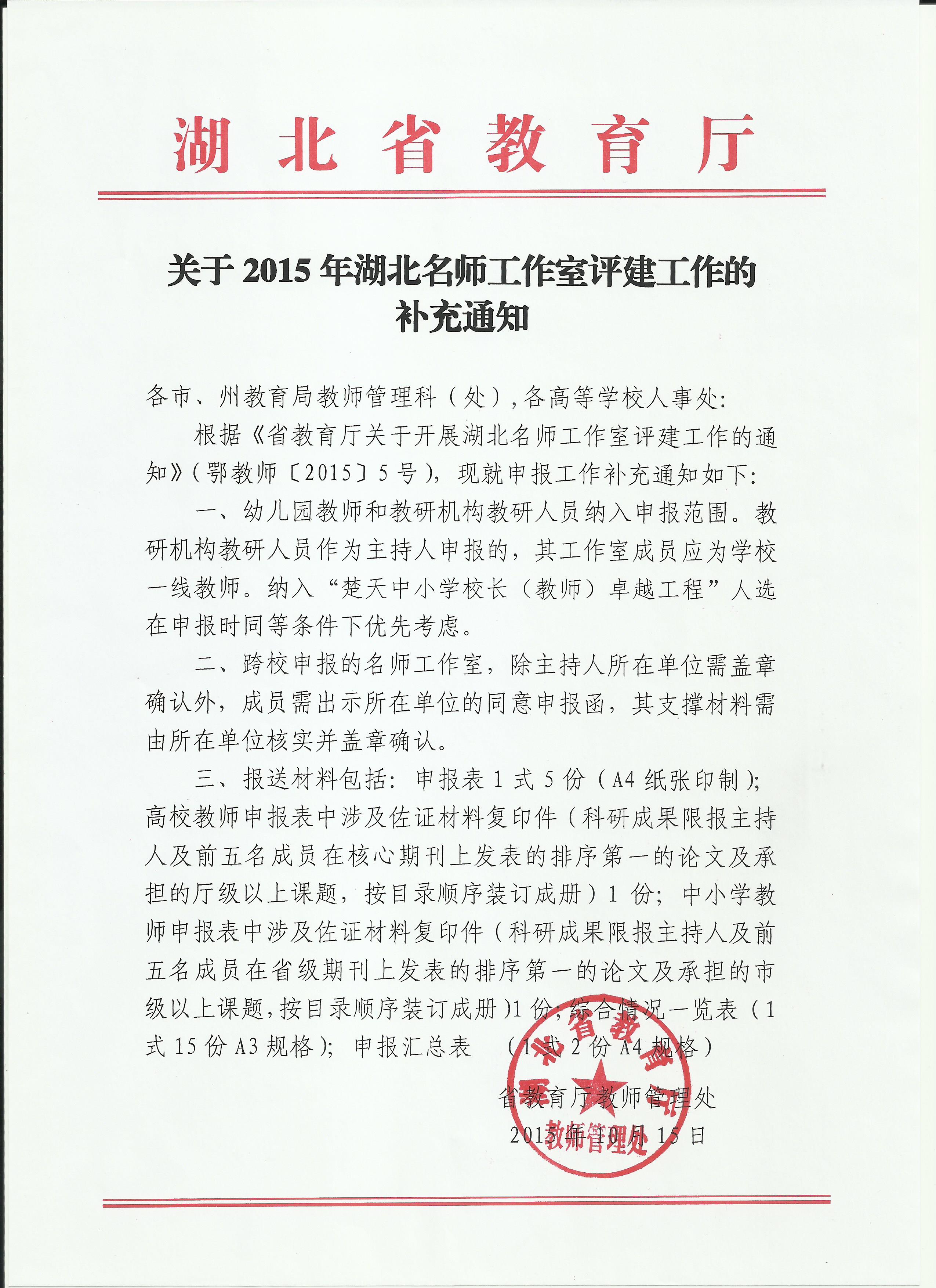 2.湖北名师工作室评建工作补充通知