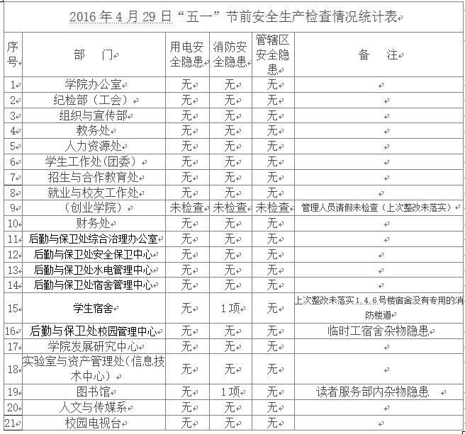 此次检查主要以单位自查和安全稳定工作领导小组抽查相结合的方式。本次抽查21个单位,检查结果整体情况良好,但也有个别单位存在隐患,如用电设备周围堆放书籍、纸张等易燃物品,办公室无人时未关闭空调、电脑、开水器、充电器和插座电源,未做到人走断电。请相关单位针对检查中出现的问题进行整改,保障正常的教学及生活秩序,做到防患于未燃,让自己拥有一个简洁而舒心的、安全的办公场所。