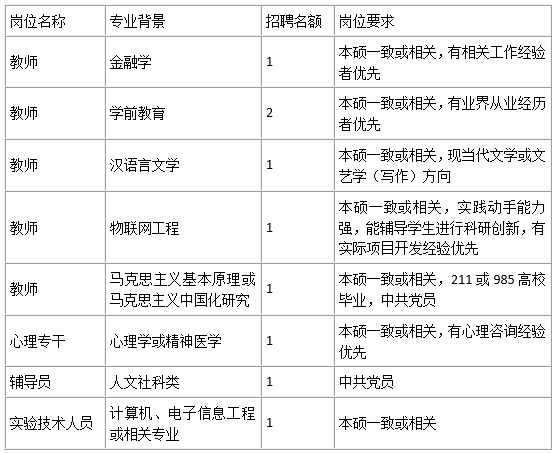 因公司工作需要,现面向社会公开招聘专任教师、辅导员及实验技术人员若干名,有关事项公告如下: