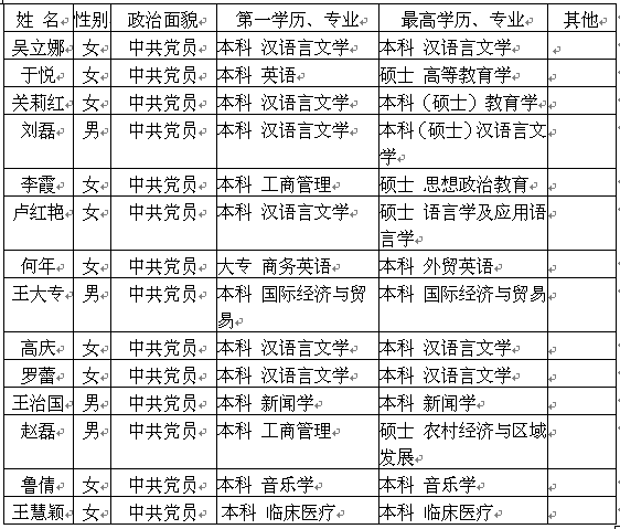 自《关于推荐新闻宣传通讯员的通知》下发后,各单位认真组织推荐通讯员,经我部研究,决定组建一支政治素质高、思想品德好的教工通讯员队伍,现将教工通讯员名单公布如下: