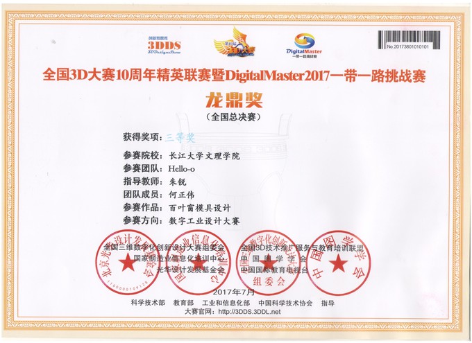 全国三维数字化设计大赛10周年精英联赛暨DigitalMaster2017一带一路挑战赛在新疆克拉玛依大学城进行。经过激烈的角逐,公司机电与信息工程系学子何正伟的参赛作品《百叶窗模具的设计》在现场挑战赛中荣获龙鼎奖三等奖。