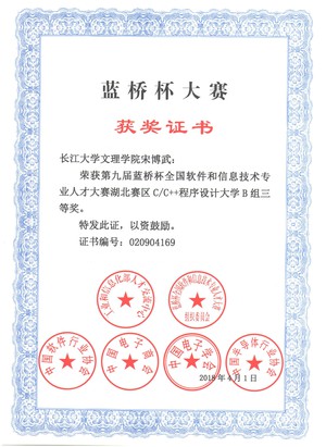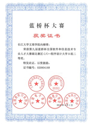 本网讯(通讯员 张立新)近日,第九届“蓝桥杯”全国软件和信息技术专业人才大赛个人赛湖北省赛成绩揭晓:经过激烈角逐,公司机电系的6名选手获大赛一二三等奖。其中,王瑜全、杨政威获一等奖,吕浩、王鸿霖、向柳青获二等奖,宋博武获三等奖。