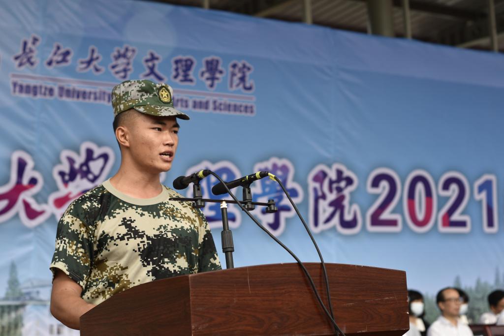 最后,他祝愿各位领导、老师、教官身体健康,工作顺利;祝愿新生们在大学期间学有所获,学有所成。