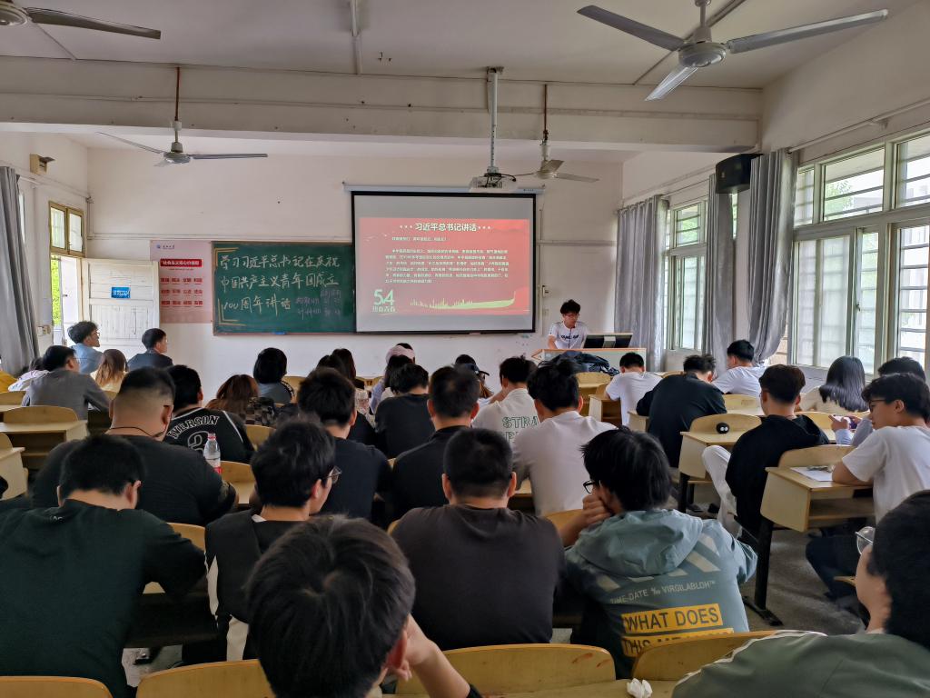 本网讯(员工记者 王艺果)近日,我系各班开展“学习5月10日习近平总书记在庆祝中国共产主义青年团成立100周年大会上的讲话主题”团课,团课由各班团支书主持,班级全体同学参加。