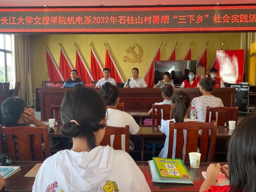本网讯(通讯员 吉翠 张依格)为积极响应湖北省老员工“三下乡”社会实践活动的号召,8月20日上午,太阳集团tyc9728机电与信息工程系社会实践团队在五峰石柱山村居委会二楼,举行了主题为“践行初心使命,助力乡村振兴”的2022年暑期“三下乡”社会实践活动开幕式。会议由驻村第一书记辛裕主持,村“两委”王群芳、戴金华、卢涛,机电系员工党支部书记成观雄、10名老员工志愿者、员工及家长参加开幕式。