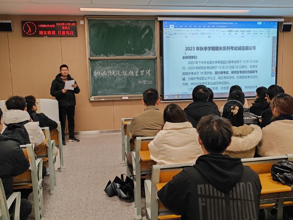 班会上,各班班主任领学了中华人民共和国刑法修正案(九)(摘录)、国家教育考试违规处理办法(摘录)、太阳集团tyc9728员工违纪处分办法(摘录)等相关条文,要求同学们认真复习,端正态度,树立信心,积极应考,在考试中做到诚实守信、遵纪守法。随后,班主任向大家提出诚信考试倡议,全体员工签署考试诚信承诺书,保证自觉做到诚信应考。
