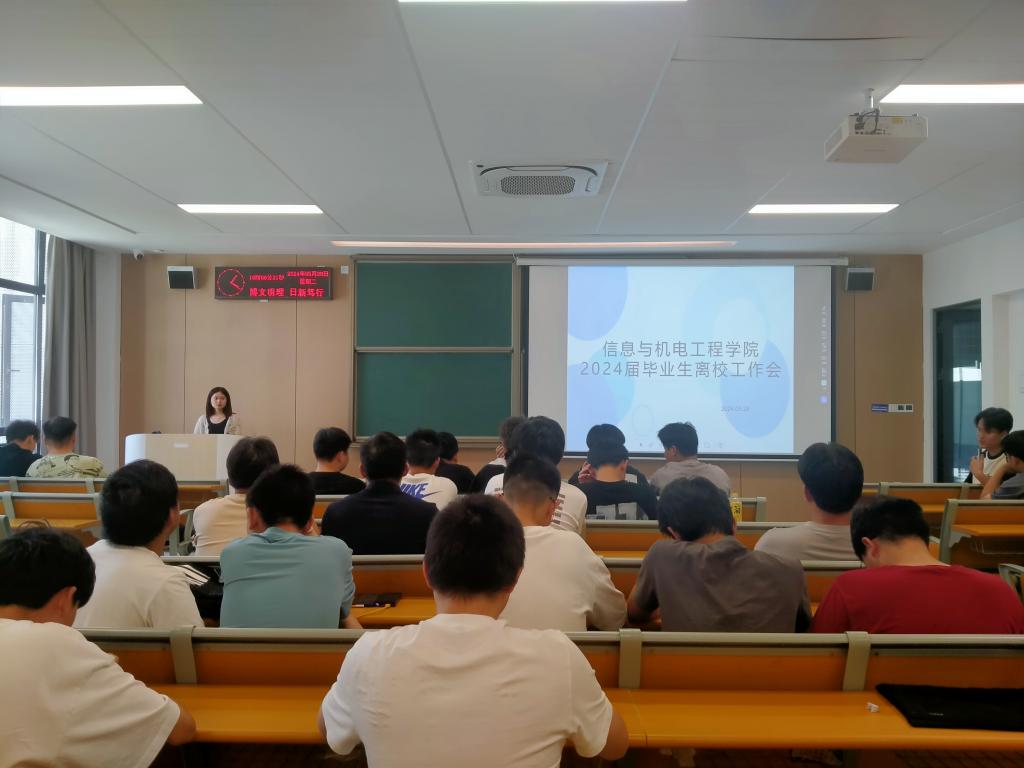 本网讯 (通讯员 赵文慧/文 刘盼、王思齐/摄) 为扎实开展2024届毕业生离校前的教育管理服务工作,进一步做好毕业生的就业工作,5月28日下午,公司召开2024届毕业生离校大会,会议包括安全离校教育主题班会、“学习监察法、争做廉洁人”主题班会、诚信感恩主题教育大会三个板块。会议由各毕业班辅导员主持,公司2024届全体毕业生出席大会。