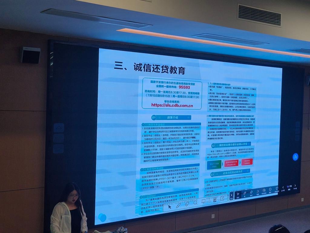 辅导员深入浅出地解释了诚信和感恩的内涵,并结合生活中的案例,生动阐述了诚信与感恩对个人和社会的重要意义,希望大家及时完成生源地信用助学贷款的还贷,努力学习和工作,回报社会。辅导员强调,诚信是一种品质,感恩是一种美德,只有在诚信感恩的道路上不断前行,社会才能更加和谐稳定。