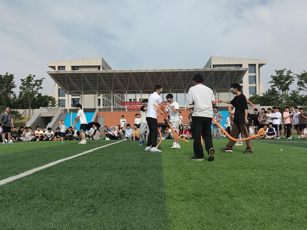5月18日“以聚传爱,以行健心”户外素质拓展活动在操场顺利举办,全院员工共同参与,一起进行团体活动游戏。此次比赛精心设计了“车轮滚滚”“快乐接力”“爱的抱抱”“蒙眼互打”四个精彩游戏项目,活动过程中,同学们热情高涨,尽情地挥洒着汗水,游乐中欢声笑语,团队的精神化作纽带将同学们紧紧地联系在一起,大家共同努力,共同进步。现场气氛异常热烈,每个同学都积极参与其中,全力以赴,为班级荣誉而战。