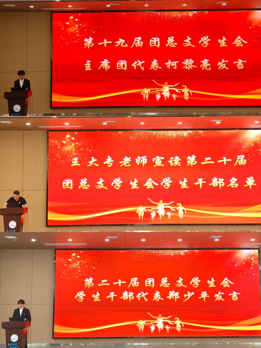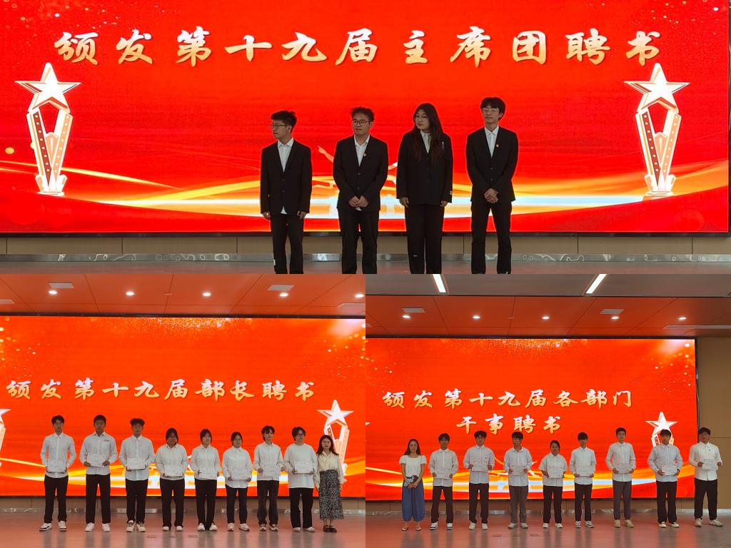 会议伊始,主持人致开场词,辅导员朱亦丹、王妍柳、陈晓倩为第十九届员工会干部颁发聘书。第十九届主席团代表柯黎亮发言,他从自身经历、干部工作和干部责任等方面为学弟学妹们传授经验,以“聚是一团火,散是满天星”,向新一届员工会成员表达自己的期待,希望大家努力在团学组织发光发热。