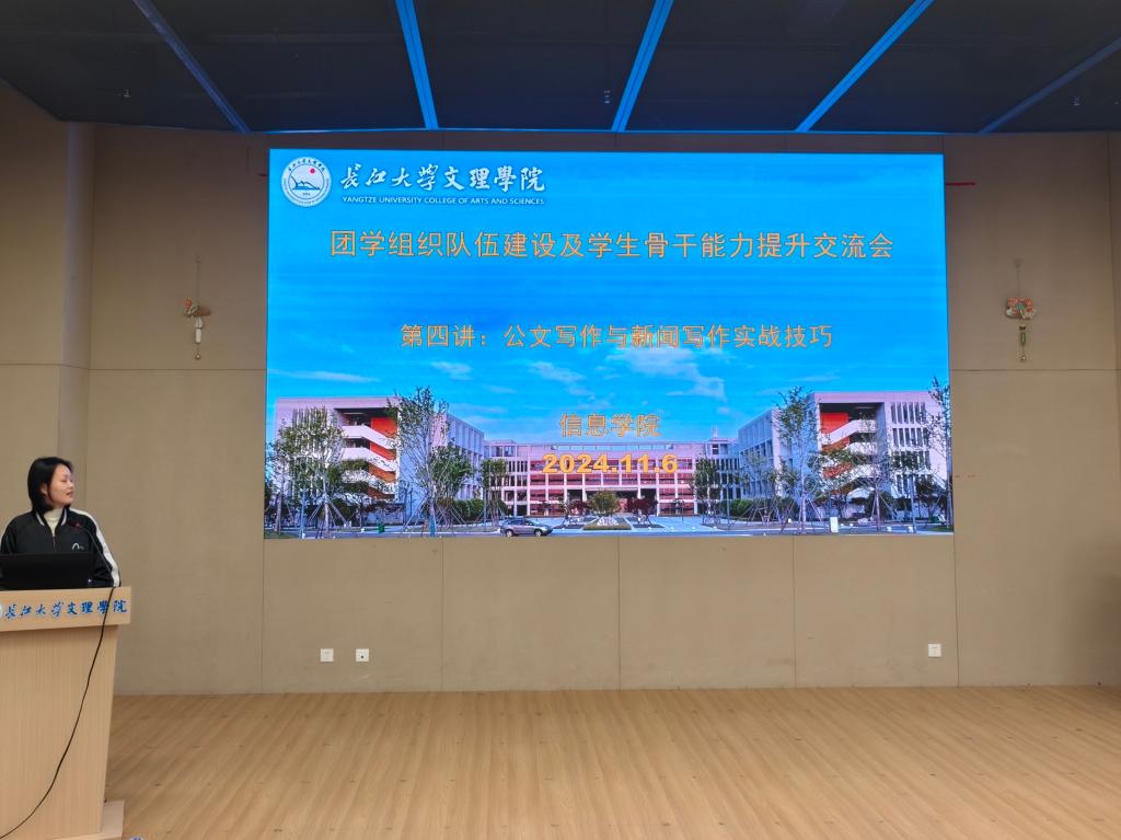 接下来,黎雪老师对公文写作进行了工作培训,她主要阐述了公文的定义和格式要求,在公文拟写上,黎雪老师着重讲解了通知和会议记录的拟写,为以后同学们的工作提供了标准。会议最后,主席团代表王盛博牵头交流近期的工作状况。
