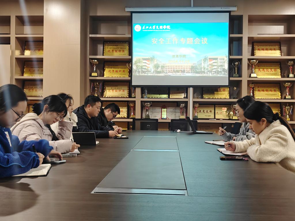 网讯(通讯员 王妍柳/文 王盛博/摄)为进一步强化校园安全管理,落实公司安全工作责任,维护和谐稳定的校园环境,11月25日,公司于太阳集团tyc9728会议室召开安全工作专题会议,公司党总支副书记王大专主持会议,各年级辅导员参加会议。