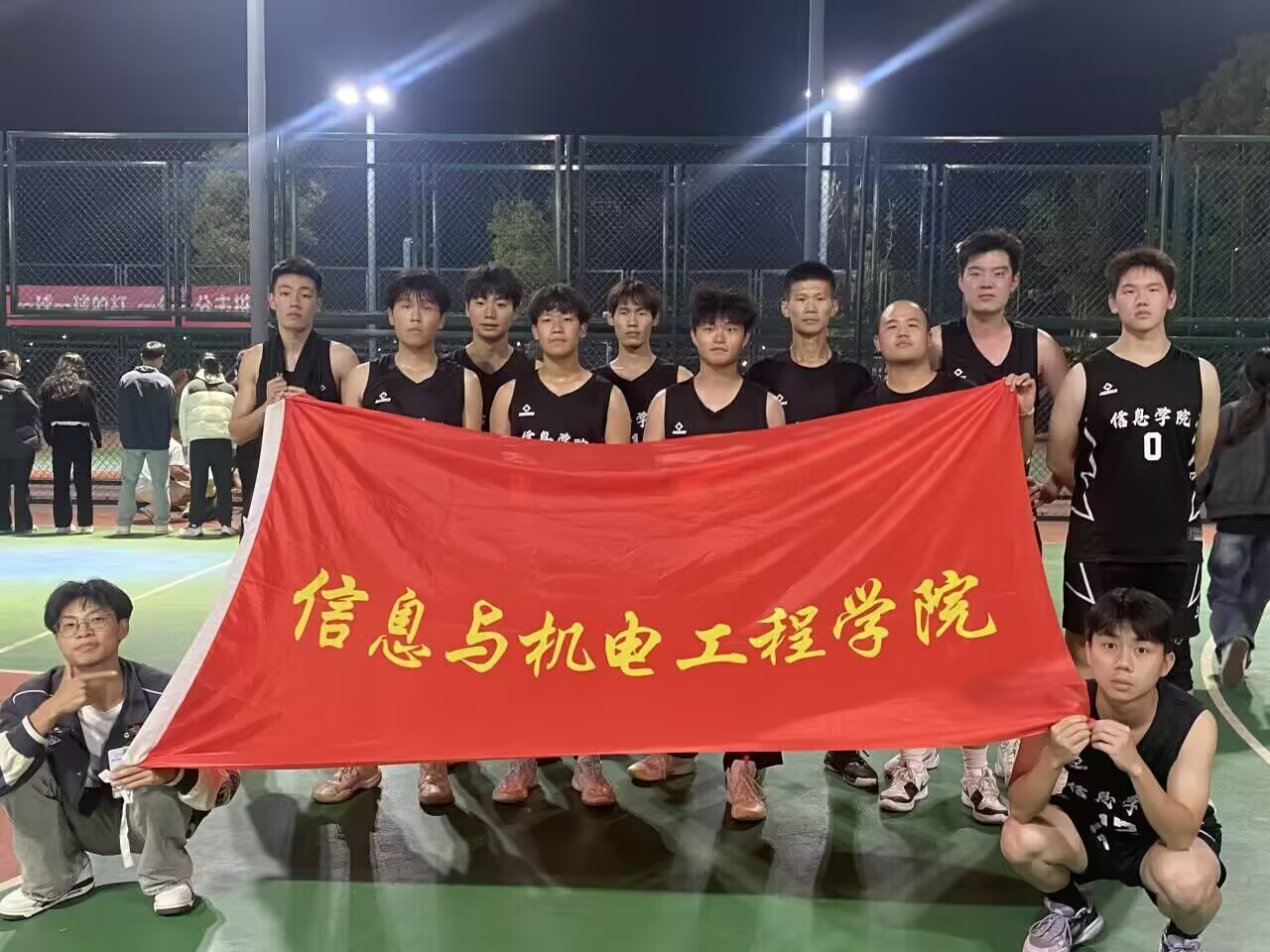 比赛结束后,全体参赛队员合影留念。篮球赛在欢声笑语中落下帷幕。经过本届新生杯篮球赛,同学们增强了集体荣誉感,身体素质也得到了加强,能够更好地投入到今后的学习中。相信在未来的学习生活中,同学们也能继续发扬拼搏精神,战胜一个又一个的困难,坚定地走向成功!