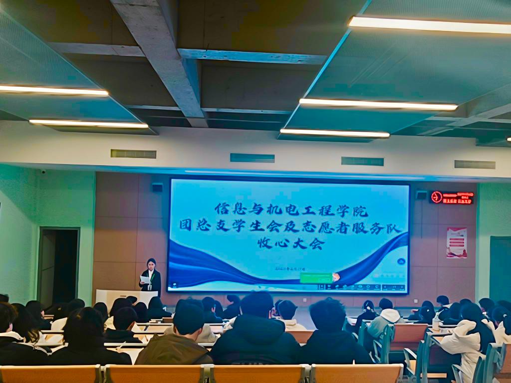 本网讯 (通讯员 李文斌/文 蔡浩文 谢天禹 覃美君/摄) 2月19日晚,公司于B-214教室举办新学期团总支员工会及志愿者服务队收心大会。本次大会由公司员工会综合办公室熊小意主持,公司党总支副书记王大专出席会议,公司团学组织全体员工干事参加会议。