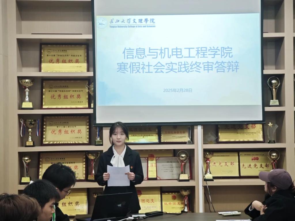 活动伊始,主持人任静茹通过多媒体导览系统介绍展评规则。公司党总支副书记王大专老师作为评委代表讲话,他强调,社会实践是青年员工深入基层、锤炼品格的重要途径,勉励同学们在服务社会中实现自我成长。根据赛前抽签顺序,郑天资、陈湫杙等6位候选人依次登台,通过PPT图文展演还原实践场景,展示中既有“返家乡”学子参与基层治理的履职纪实,也有“爱心托管班”志愿者与儿童的暖心互动。展示结束后,评委小组从实践价值、成果转化、答辩表现等维度进行现场评分。