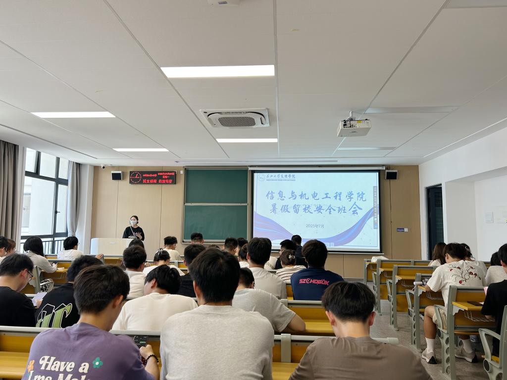 本网讯(通讯员 王妍柳)为进一步加强留校员工暑期安全教育、筑牢安全防线,7月7日下午,公司于A-208教室召开2025年暑假留校员工安全教育班会,班会由辅导员陈晓倩、王妍柳主持,公司党总支副书记王大专出席会议,公司暑期留校全体员工参加会议。
