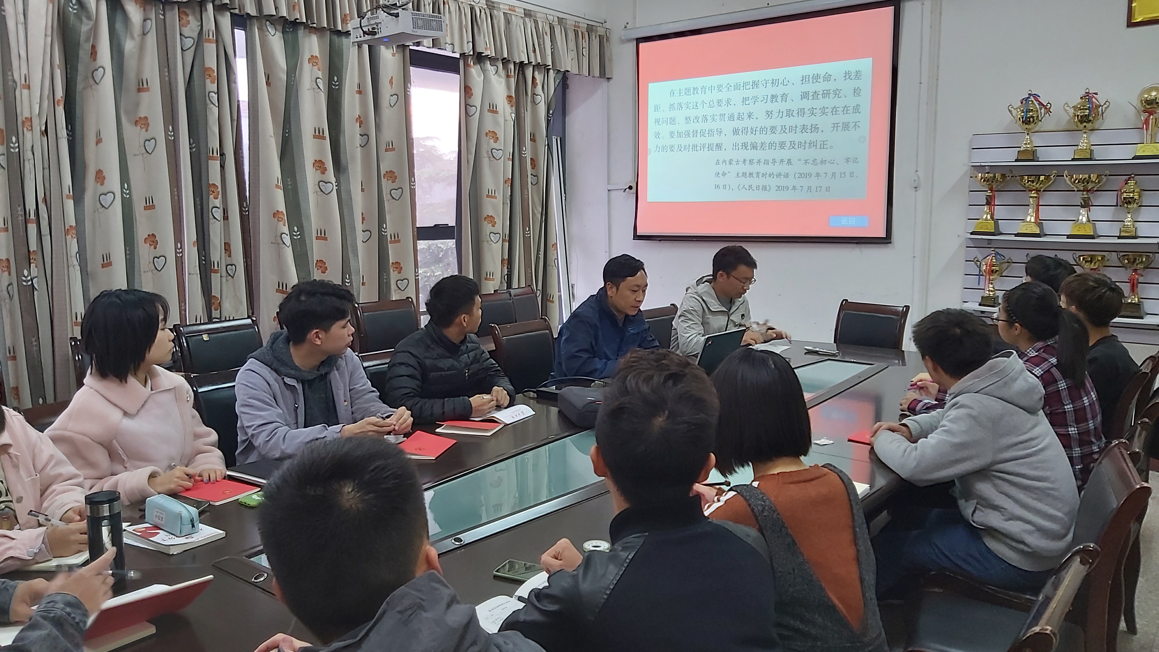 在开展“弘扬爱国奋斗精神、建功立业新时代”专题活动阶段,学习了新时代公民道德建设实施纲要,教育部关于追授于瑾同志“全国优秀教师”荣誉称号的决定,朱业宏同志将“改”字贯穿主题教育全过程内容,组织部关于近期抓好主题教育的具体要求等,并传达学习《中共太阳集团tyc9728委员会第四次代表大会工作方案》精神,强调政治学习的重要性。