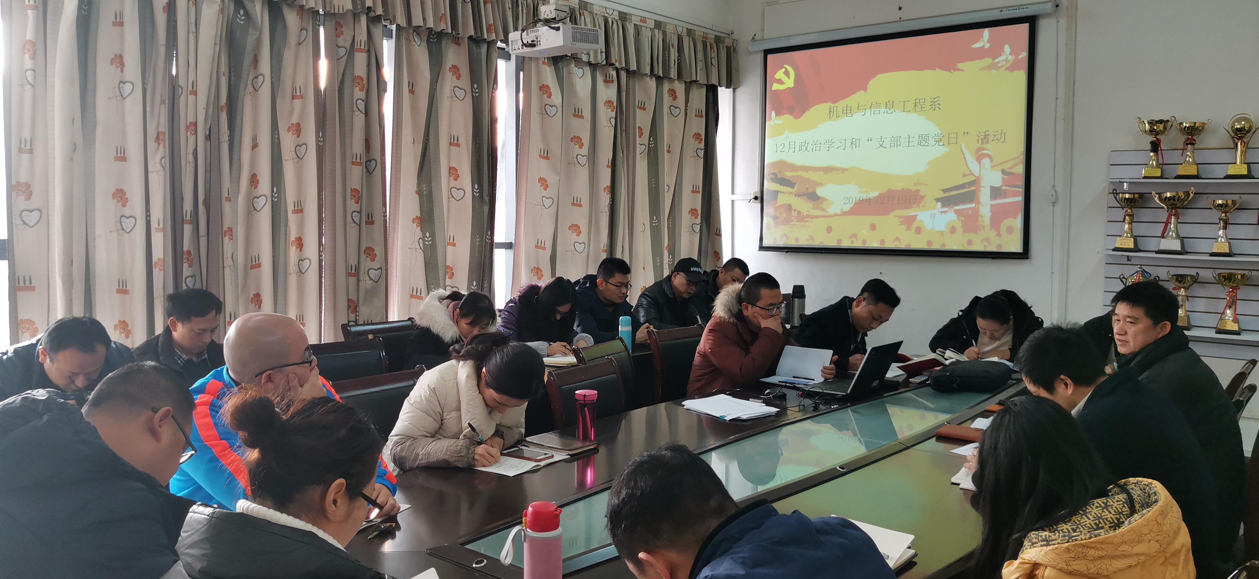 本网讯(通讯员成观雄)12月19日下午3点,我系党总支在系会议室开展12月份政治学习和“支部主题党日”活动。会议由教工党支部委员朱锐主持。