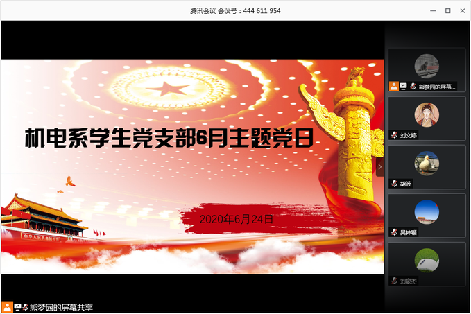 本网讯(员工记者 刘文婷)6月24日中午,在腾讯会议平台,我系员工党支部开展线上6月份政治学习和“支部主题党日”活动。会议由熊梦园主持,支部全员参与。
