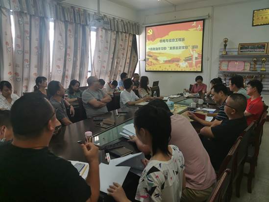 本网讯(通讯员 成观雄)9月16日下午,我系教工党支部在会议室召开展9月份政治学习和“支部主题党日”活动。会议由教工党支部书记呙明辉主持。