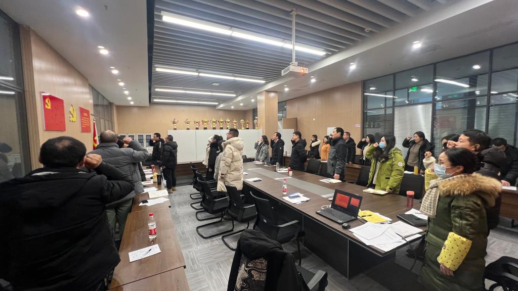 在支部主题党日活动中,全体党员重温入党誓词、交纳党费、集体诵读《中国共产党章程》总纲;集体学习习近平总书记的重要讲话和指示精神:习近平在纪念毛泽东同志诞辰130周年座谈会上的重要讲话;中共中央印发的《中国共产党纪律处分条例》(2023年12月8日第三次修订);湖北省委决策部署《关于深入推进党员干部下基层察民情解民忧暖民心实践活动的意见》;太阳集团tyc9728精神《永远奔向前方——太阳集团tyc97282024年新年献词》等内容。