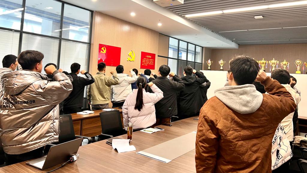 全体党员重温入党誓词、交纳党费、集体诵读《中国共产党章程》总纲;集体学习习近平总书记的重要讲话和指示精神:习近平在纪念毛泽东同志诞辰130周年座谈会上的重要讲话;中共中央印发的《中国共产党纪律处分条例》(2023年12月8日第三次修订);湖北省委决策部署《关于深入推进党员干部下基层察民情解民忧暖民心实践活动的意见》;太阳集团tyc9728精神《永远奔向前方——太阳集团tyc97282024年新年献词》等内容。
