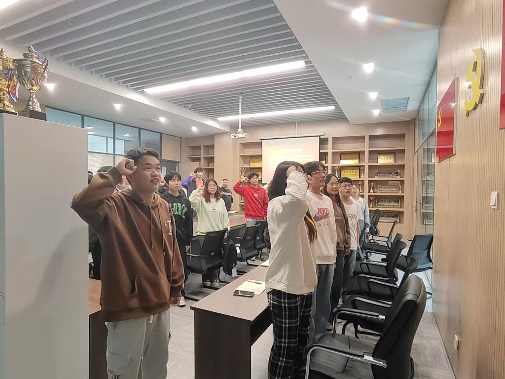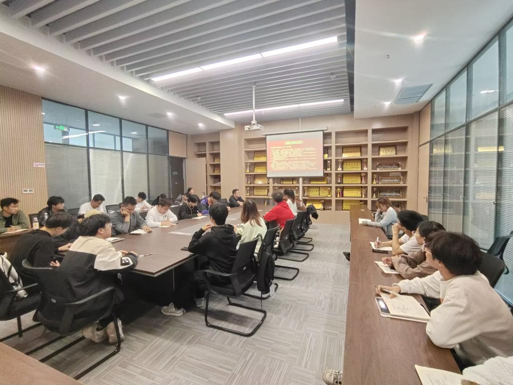 支部主题党日活动阶段,全体党员重温入党誓词,并按时交纳党费。随后,全体党员集中学习《党章》(第一章);学习习近平总书记重要讲话和重要指示批示精神;学习习近平在庆祝中华人民共和国成立75周年招待会上发表的重要讲话内容;学习习近平在党的二十届三中全会第二次全体会议上的讲话。