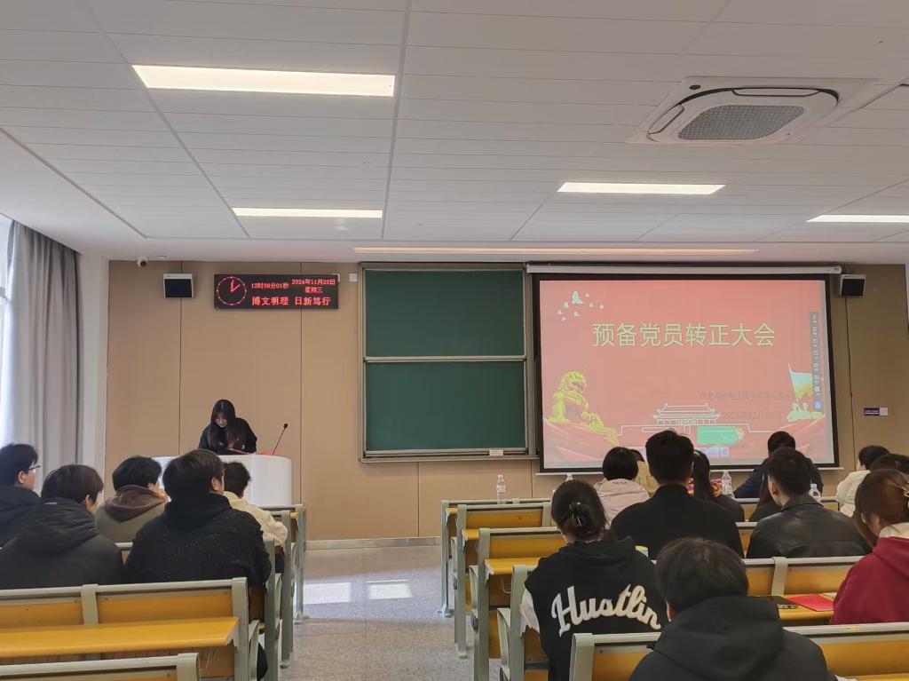 大会开始,支部纪检委员汇报出席会议的党员人数,表示到会人数符合要求,可以继续开会,九名预备党员依次从思想、学习、生活、工作等方面向党支部汇报自己的现实表现,说明成绩和进步情况,找出自身的缺点和不足,并表明自己的态度和决心,以及需要向党组织说明的其他情况。随后,各位培养考察人介绍该预备党员的培养和考察情况,并对是否同意其按期转为正式党员表明意见和态度。接下来,支部委员会代表赵傲博同志报告对曹森等九名同志的审查情况,对其能否转为正式党员提出讨论意见,然后与会党员根据九名同志的日常生活、学习、思想等情况充分讨论并对此发表意见。