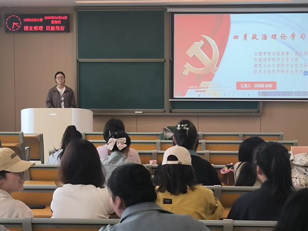 政治学习阶段,全体党员集体学习习近平总书记历次考察湖北时的重要讲话精神;学习《求是》杂志发表的习近平总书记的重要文章——《朝着建成科技强国的宏伟目标奋勇前进》;学习《中共中央八项规定》及《中央八项规定实施细则》;学习“党员干部请注意:这80条红线千万别碰!”;学习《人民日报》刊发的文章——《牢牢把握教育的政治属性、人民属性、战略属性 加快建设教育强国》。