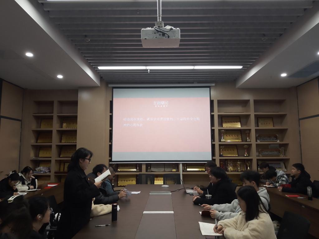 主题研讨阶段,大家围绕“学习贯彻党的二十届四中全会精神的心得体会”开展讨论,员工党员们积极发言表达自己的看法。