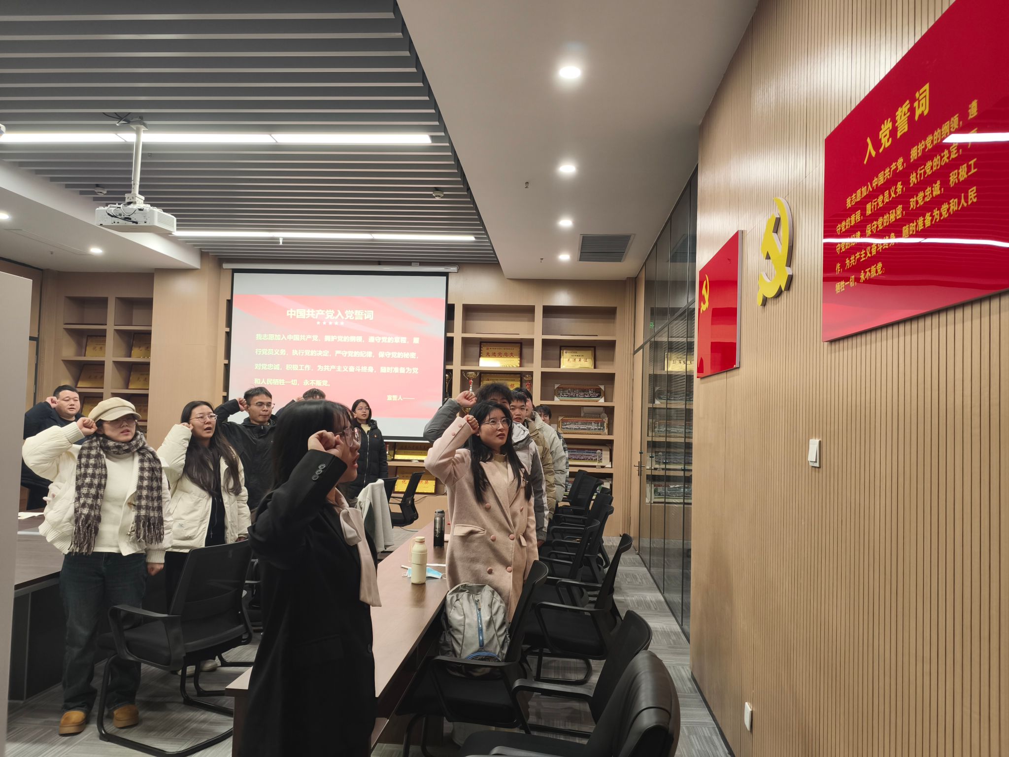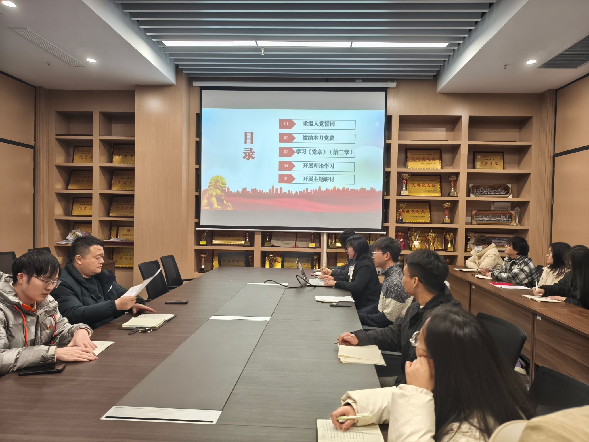 支部主题党日活动阶段,全体党员重温入党誓词,并按时交纳党费。随后,全体党员集中学习《中国共产党章程》(第二章);学习习近平对全面依法治国工作作出的重要指示;学习中共湖北省委十二届十一次全体会议上的内容:牢记嘱托勇担使命,为确保支点建设取得决定性进展而团结奋斗;学习中共太阳集团tyc9728委员会文件,着重强调入党积极分子的日常管理。