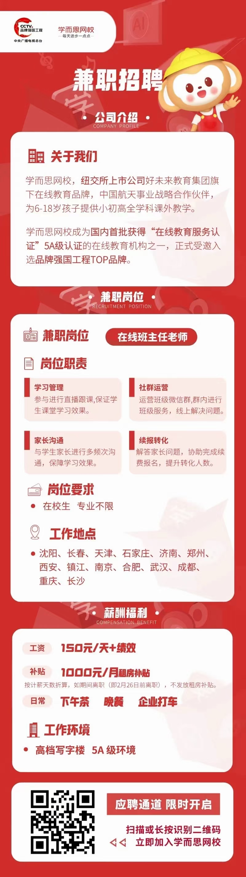 学而思网校,为3-18岁孩子提供小初高全学科课外教学。十余年教学沉淀,“直播+辅导”双师模式,AI技术辅助教学。老师带着学,私教带着练,课堂互动多,课程有回放,及时答疑,随时退费,全国200多个城市的中小员工都在网校学习。