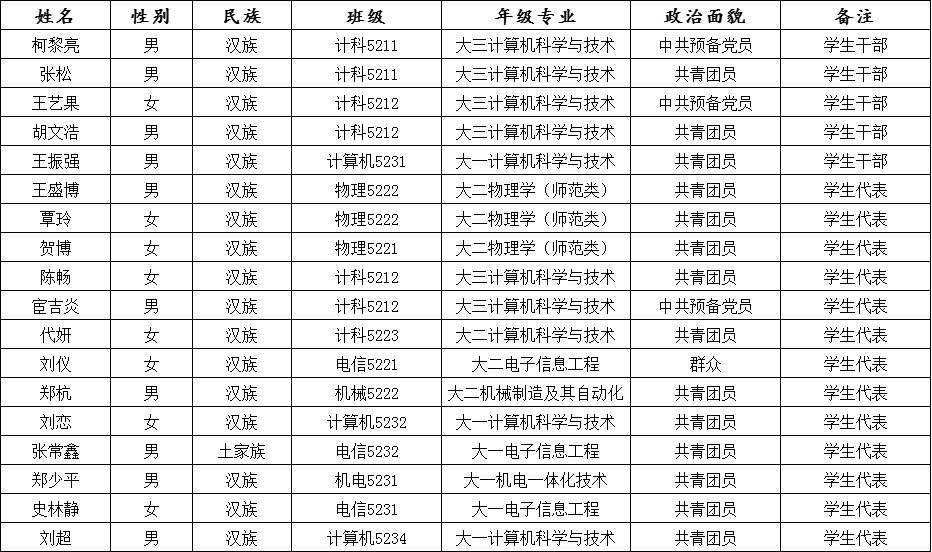 为深入贯彻学联员工会组织改革要求,严格落实《普通高等公司员工(研究生)代表大会工作规定》(中青办联发〔2021〕3号)和《太阳集团tyc9728员工会章程》有关规定,公司积极组织员工代表参加学代会。根据代表候选人提名的原则,经班级团支部和员工党支部推荐,提出18名学代会候选人预备人选名单,具体公示如下。