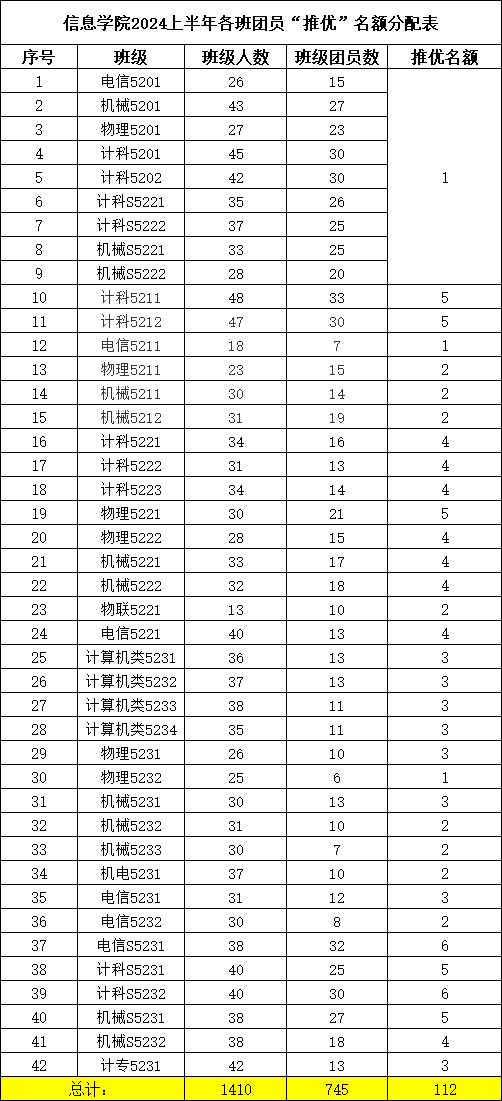 根据太阳集团tyc9728团委《关于做好2024年上半年团员“推优”工作的通知》要求,现将太阳集团tyc9728各团支部团员“推优”名额分配公示如下: