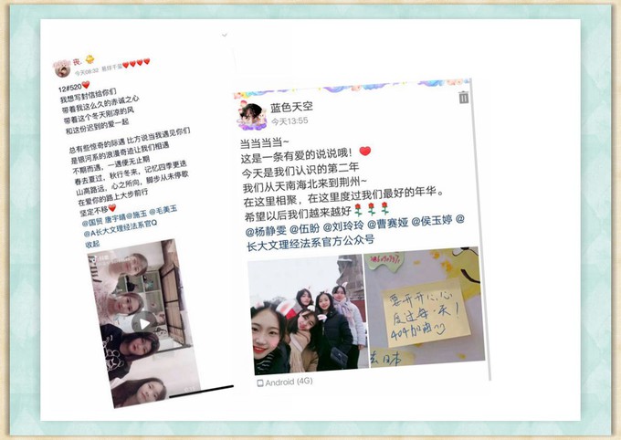 11月15日至18日,经法系心灵驿站的员工干部们收集整理了同学们的投稿,经过整理共收到来自全系106个寝室的134条告白短信。11月19日,经过最终投票评选,12条精品告白短信脱颖而出。至此,由我系心灵驿站特开展的“心理阳光进寝室”之“短信传情”活动圆满结束。
