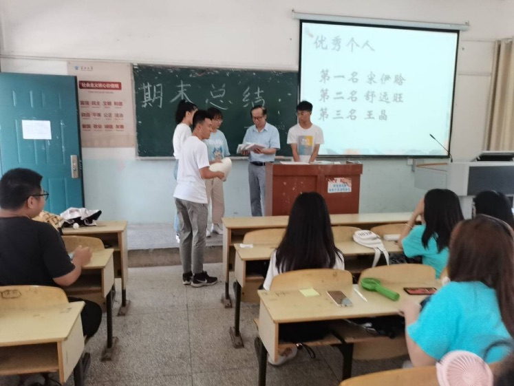 班会由全体同学评选出本学期的优秀个人三名、自强之星五名、勤学标兵三名、优秀班干部两名和两个优秀寝室。