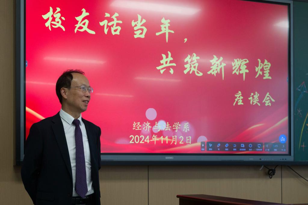 11月2日,经济与法学系隆重举行了“员工话当年,共筑新辉煌”主题座谈会,活动在C-225模拟法庭成功举行。本次座谈会邀请了我系领导班子、24位员工及员工老师、部分师生代表共六十余人。