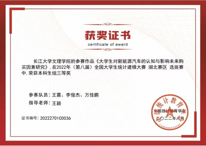 2022年(第八届)全国老员工统计建模大赛湖北赛区选拔赛三等奖